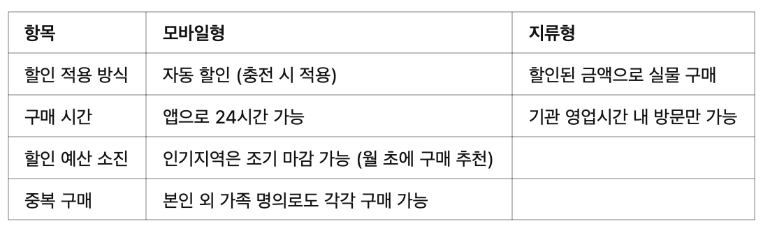 • 월 구매 한도: 보통 50~100만 원 (시·군마다 상이)